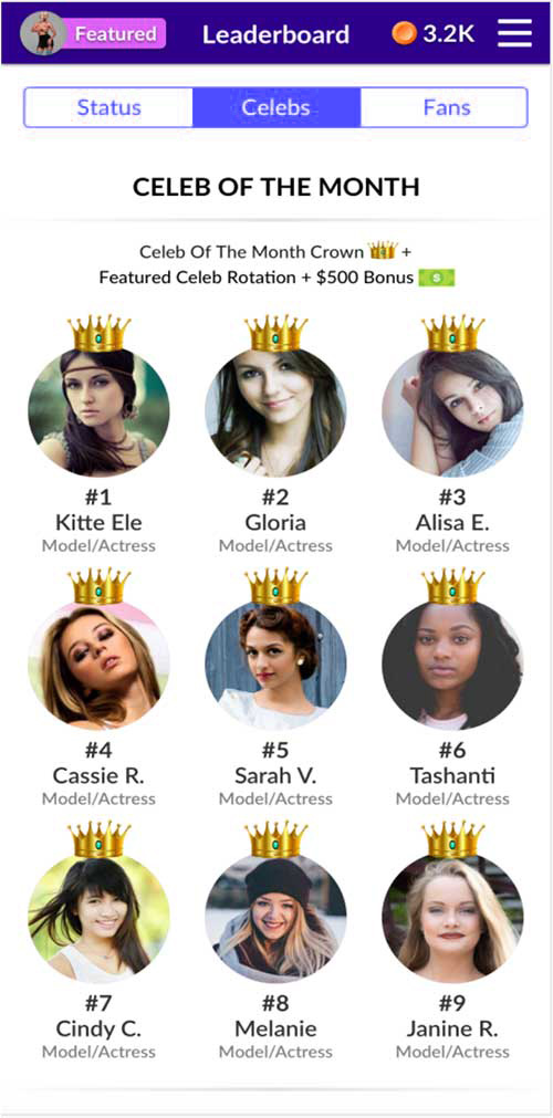 We give away $10,000 and featured placement to the top earning Celebs and Fans each month.